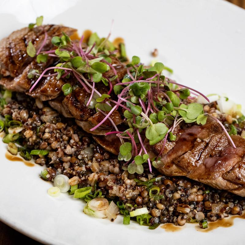 Served on vegetable wok-fried rice“yakimeshi”, Japanese seven spice powder, soy glaze.
